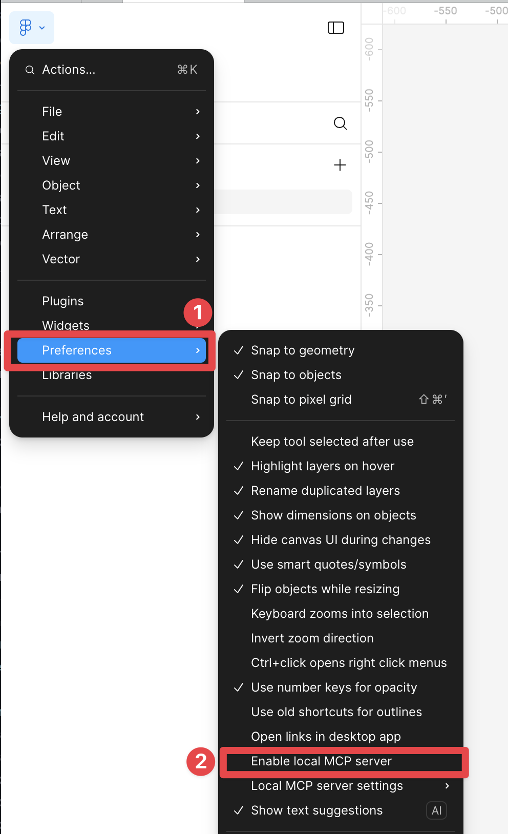 Go to Figma icon (top left) → Preferences → Enable local MCP server