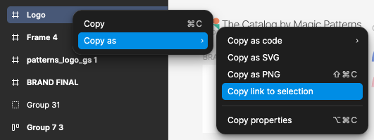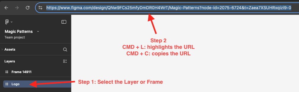 Within Figma, copy the link to a desired section or frame in your Figma file.