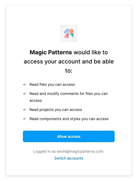 Connect your Figma account and allow access to your files.
