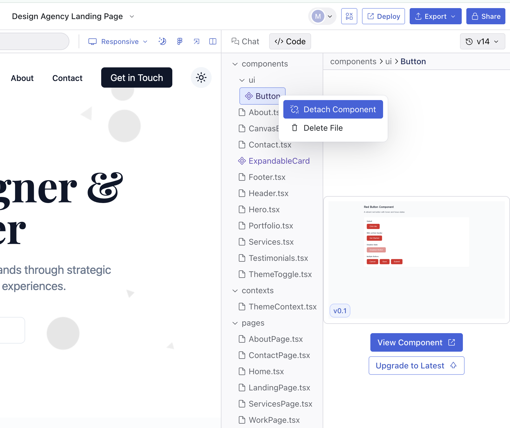 Detaching gives you a raw instance of the component, allowing the AI to modify specific parts. However, it also breaks the link to the original component, so updates to the library version will not carry over.