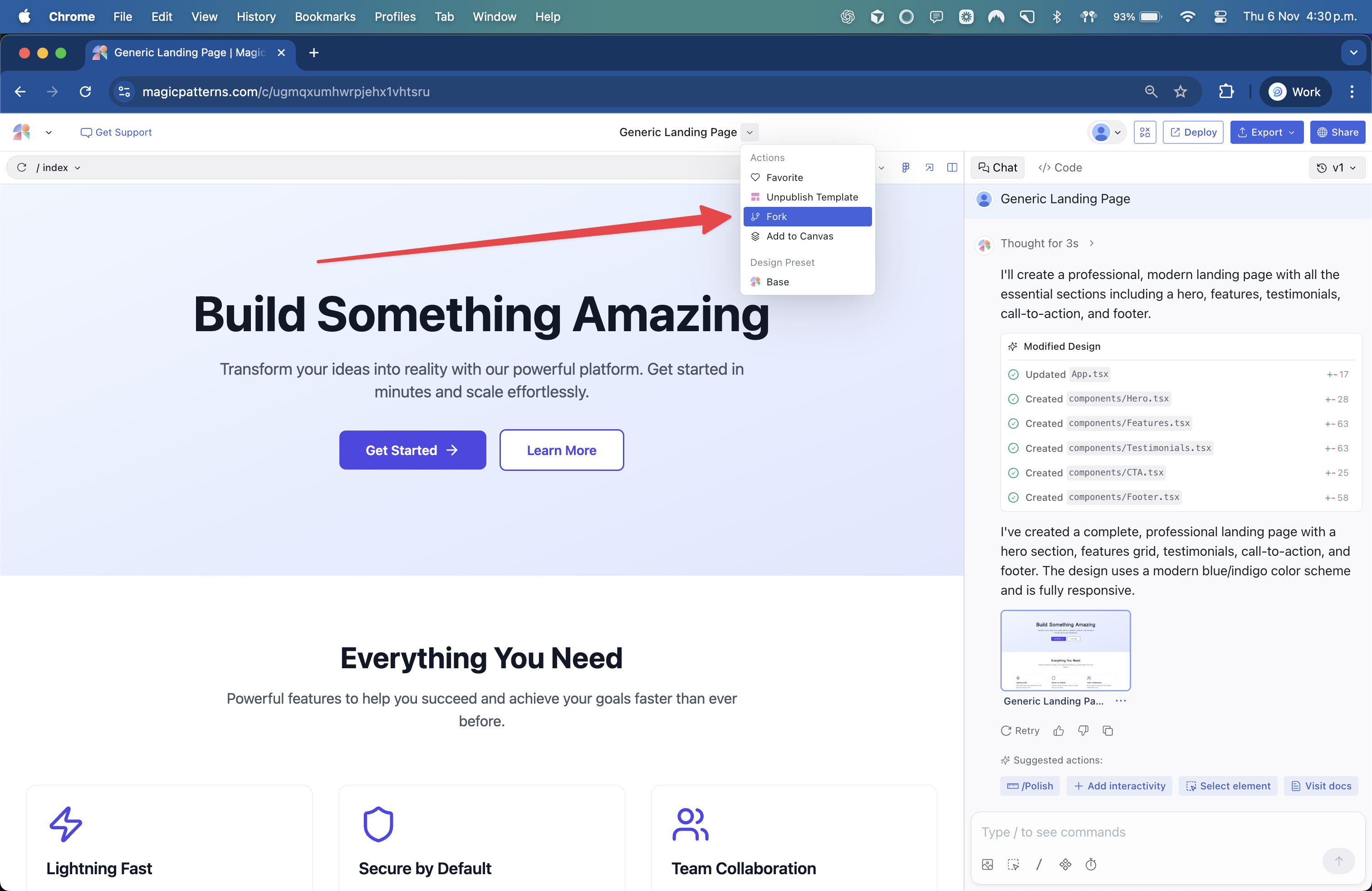 A new design will open in a separate tab. It will be titled “[Template Name] - Forked” by default, but you can rename it anytime. You are free to edit the fork however you like.