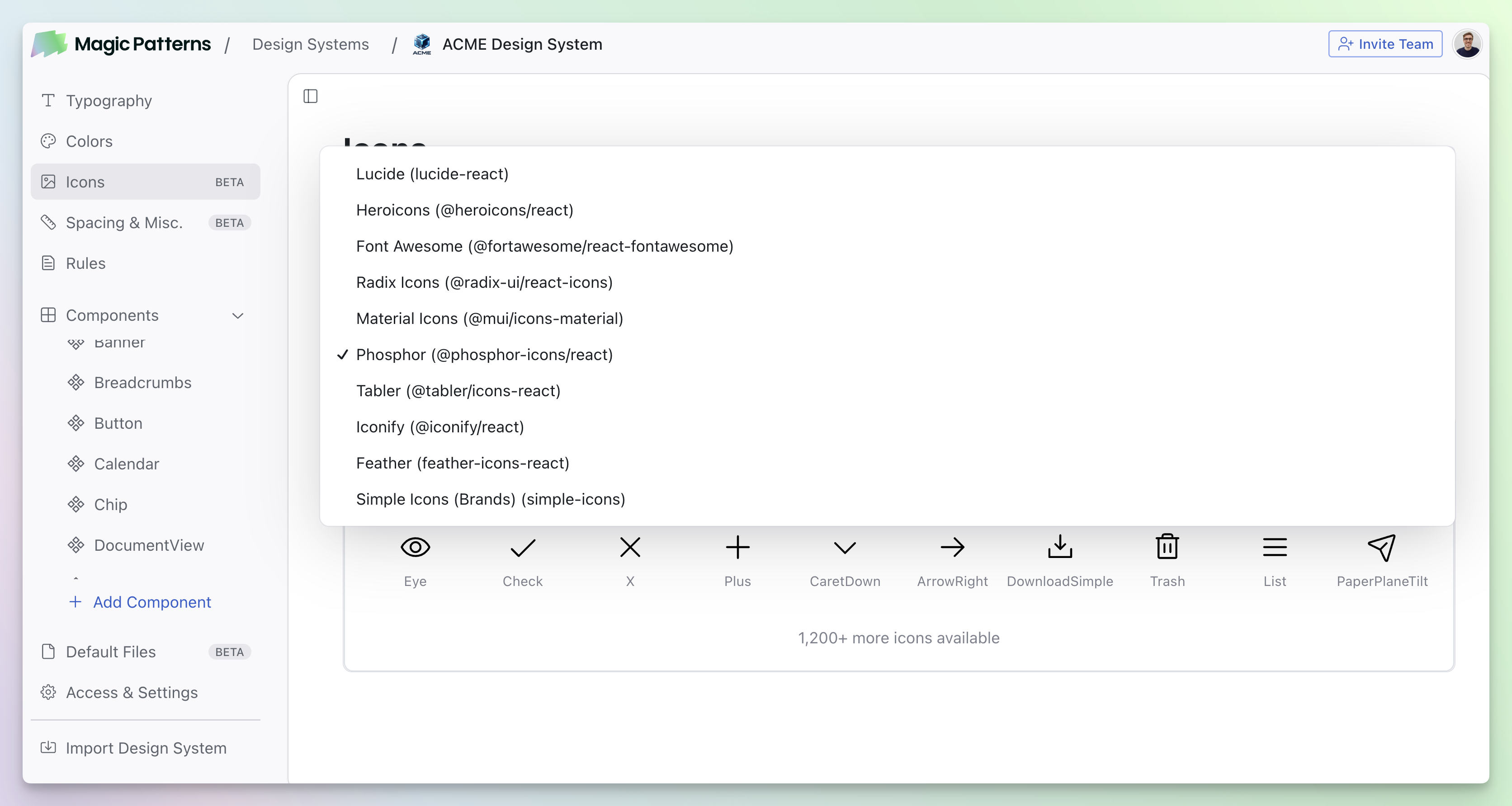 Generate components using our Material UI (MUI) Design System defaultHow it works:- Tap the Design System Selector from the Dashboard