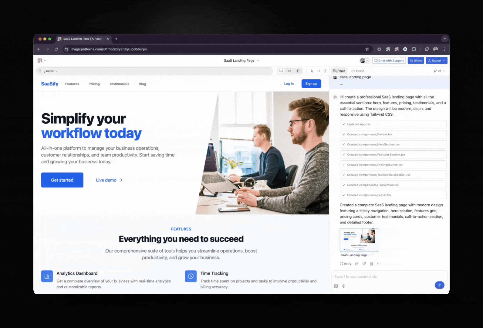 - For dropdown menus or modals: Open the menu/modal in Magic Patterns, then export