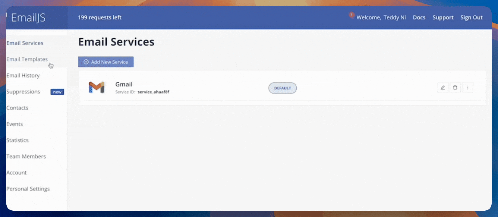 Navigate to Email Services and click Add New Service.