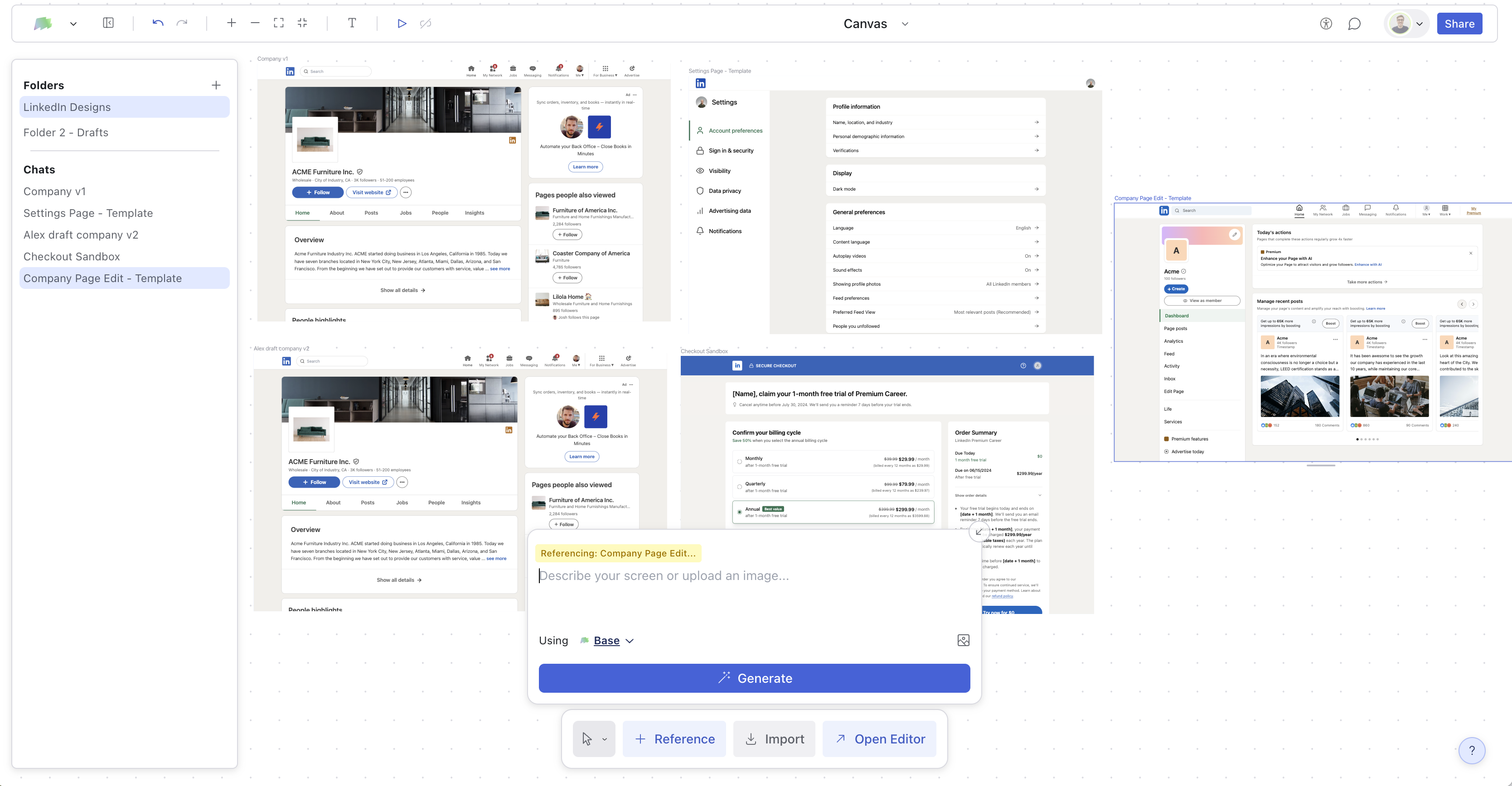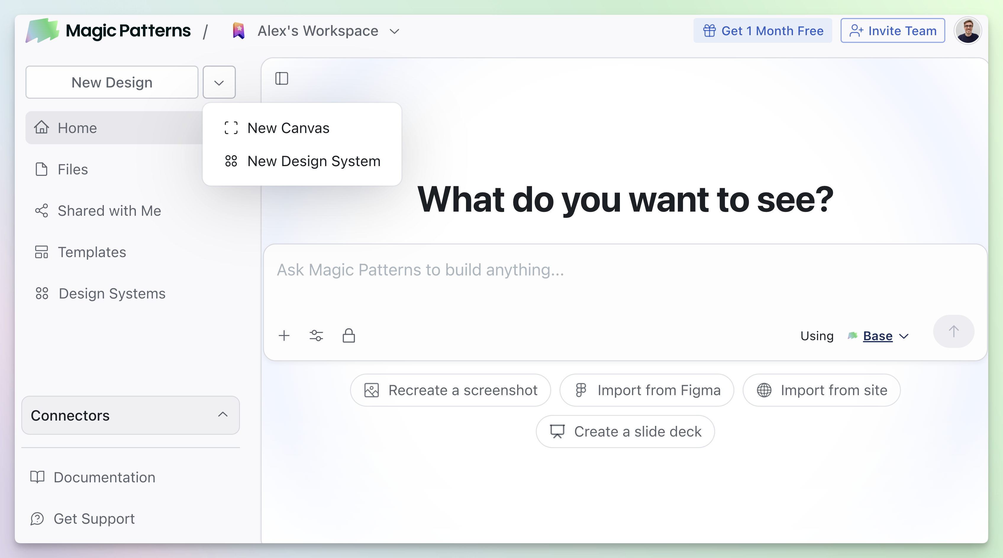 The Canvas in Magic Patterns allows you to collaborate with your team in realtime. It meant for organizing designs on a single page, like a bird’s eye view of a product. You can:- Navigate in realtime with your team.